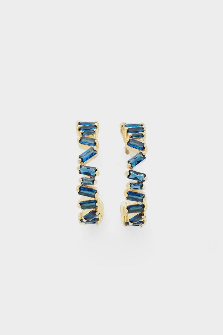 Mujer Purificacion Garcia Pendientes aro Rectangles Oro/Azul | Crystal