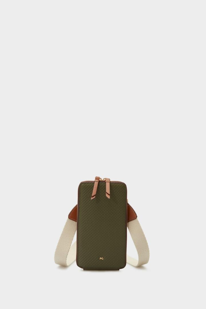 Hombre Purificacion Garcia Mini bolso móvil nylon Verde Caqui/Marrón | Accesorios para movil