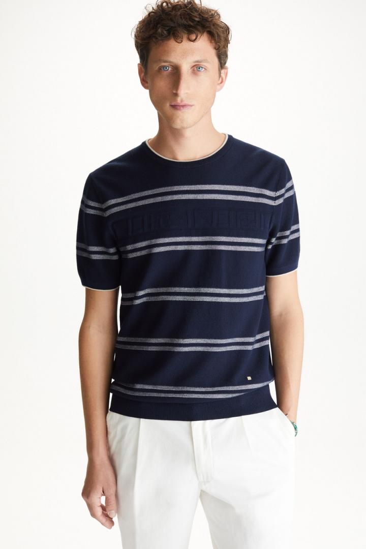 Hombre Purificacion Garcia CAMISETA PUNTO ALGODON PIMA RAYAS CINTA PG Azul Marino/Crudo | Punto