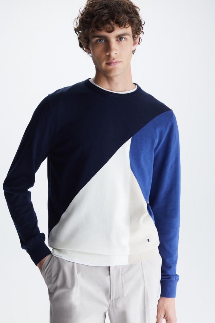 Hombre Purificacion Garcia JERSEY ALGODON PIMA INTARSIA Azul Marino | Punto