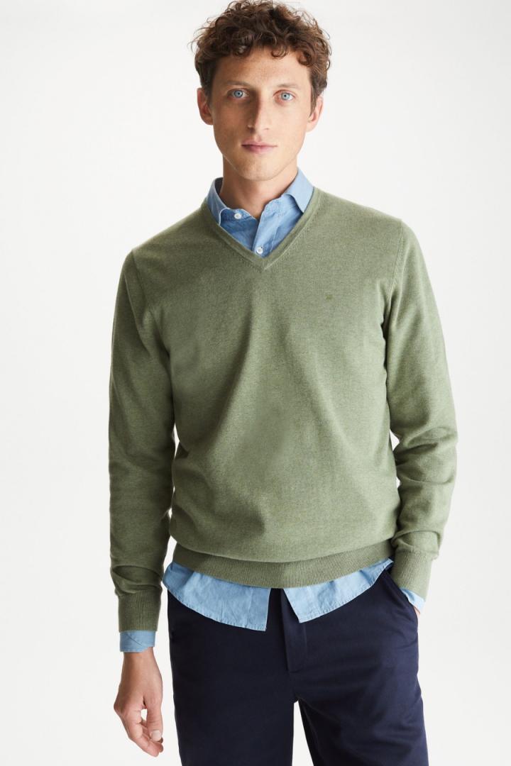 Hombre Purificacion Garcia JERSEY ALGODON CUELLO PICO Verde Caqui | Punto