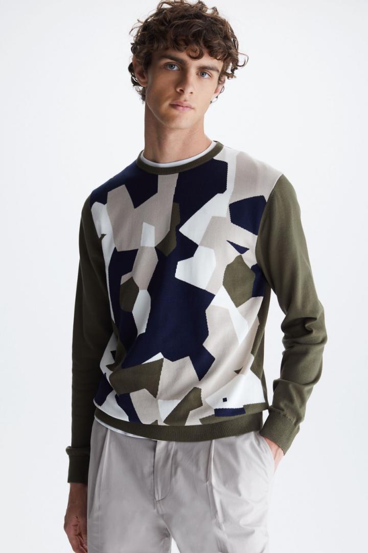 Hombre Purificacion Garcia JERSEY ALGODON PIMA CAMUFLAJE Verde Caqui/Azul Marino/Blanco | Punto