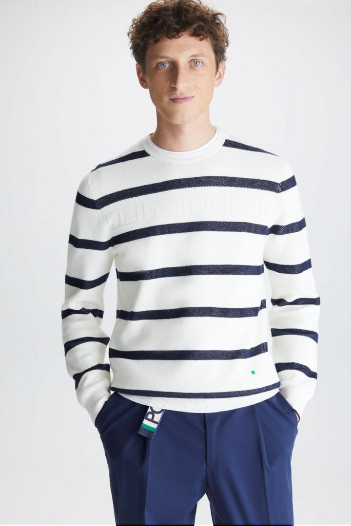 Hombre Purificacion Garcia JERSEY ALGODON PIMA RAYAS CINTA PG Crudo/Azul Marino | Punto
