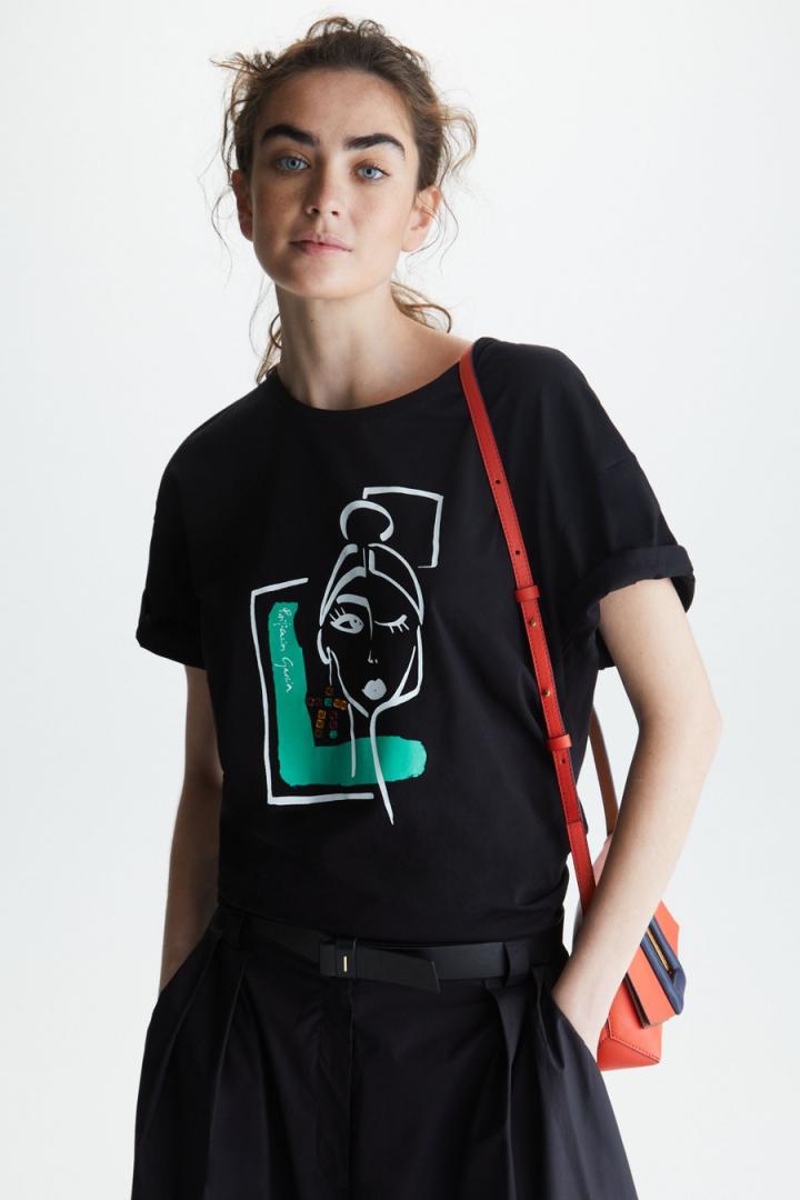 Mujer Purificacion Garcia CAMISETA ANCHA ESTAMPADO JOYA Negro | Camisetas y tops