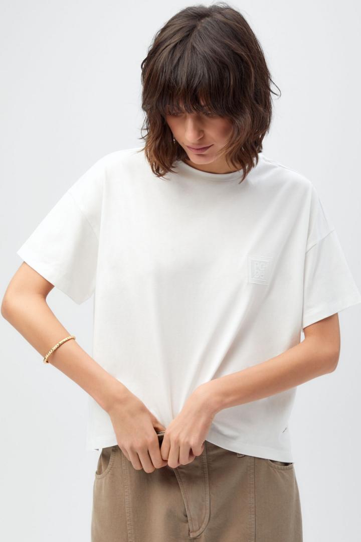 Mujer Purificacion Garcia Camiseta oversize bordado cubo PG Blanco | Camisetas y tops