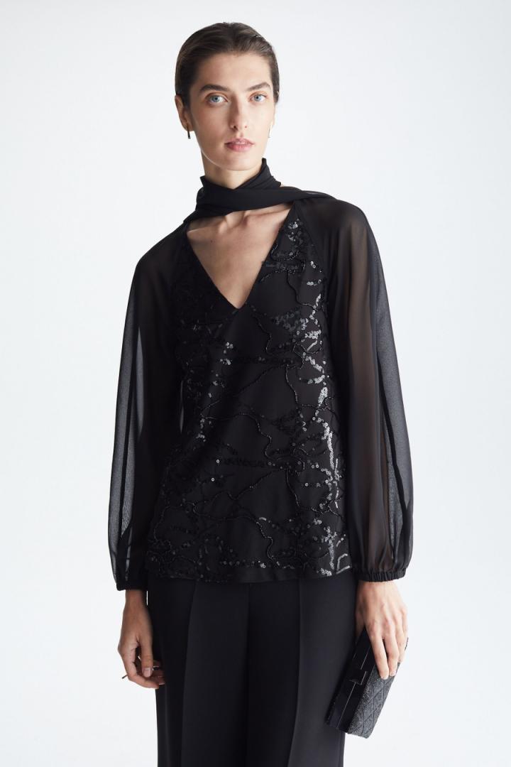 Mujer Purificacion Garcia Camiseta recta combinada pañuelo Negro | Fiesta