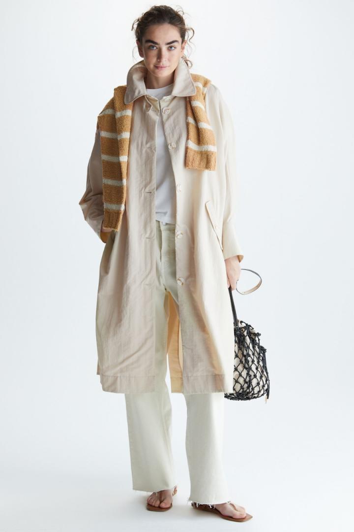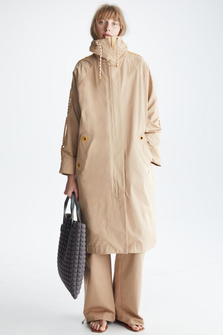Mujer Purificacion Garcia GABARDINA MIDI OVERSIZE NYLON Arena | Prenda exterior