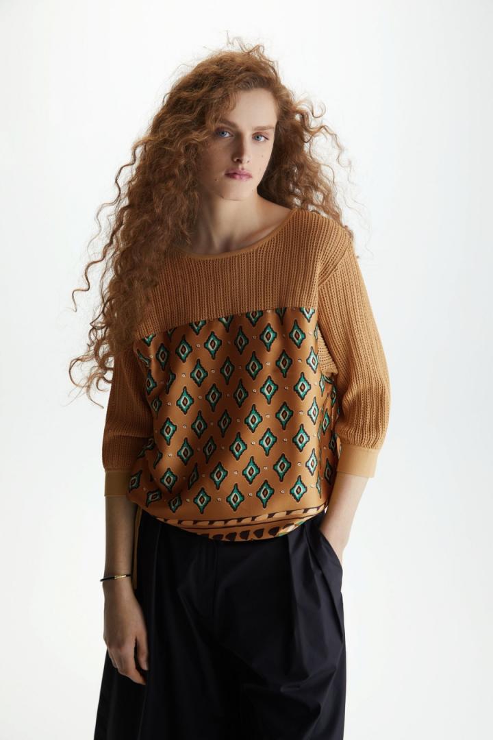 Mujer Purificacion Garcia JERSEY PUNTO CALADO TWILL ESTAMPADO IKAT TRIBAL Tostado | Punto