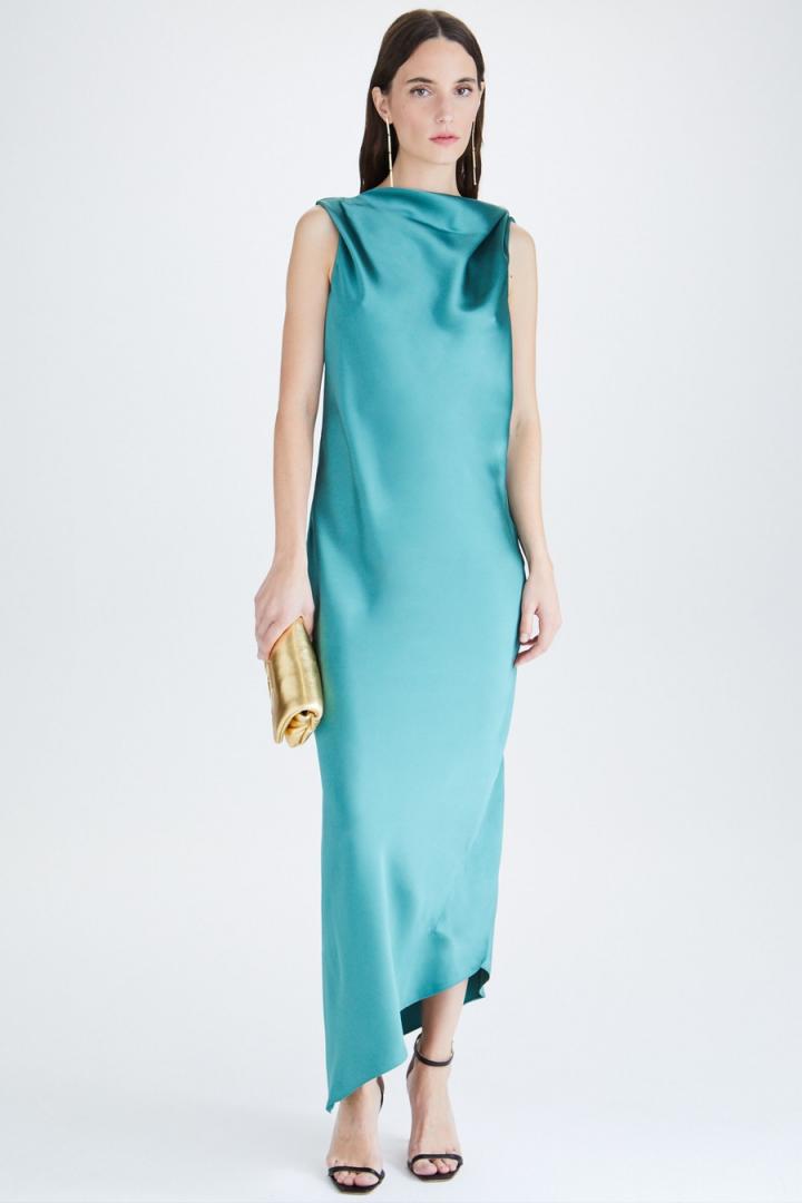 Mujer Purificacion Garcia VESTIDO DRAPEADO SATEN CINTURON Azul Turquesa | Vestidos