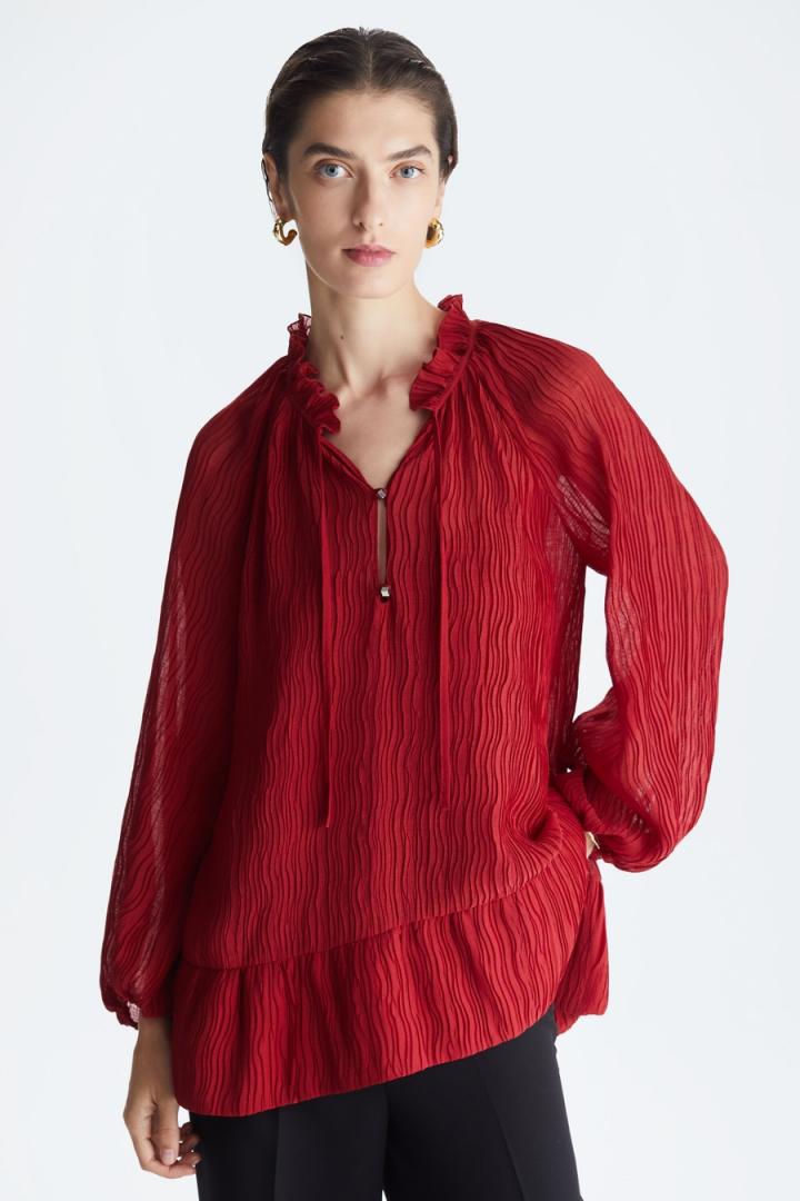 Mujer Purificacion Garcia Blusa evasé bambula Rojo | Camisas
