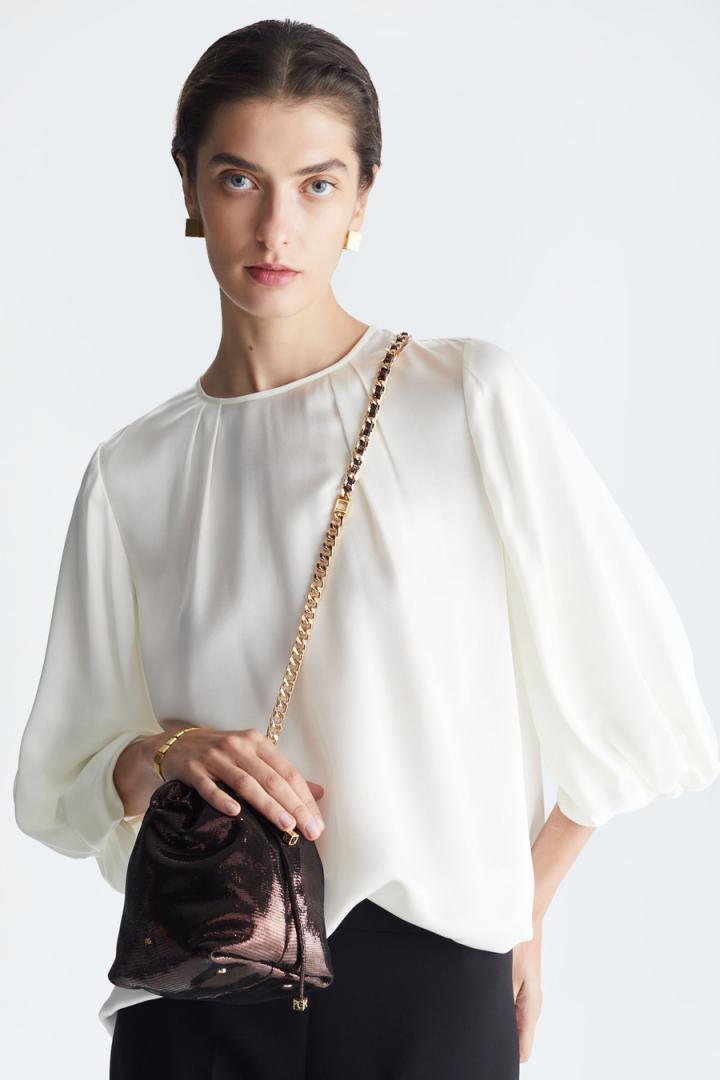 Mujer Purificacion Garcia Blusa evasé manga abullonada Crudo | Camisas