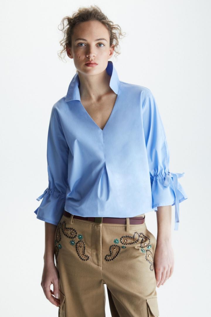 Mujer Purificacion Garcia CAMISETA POPELIN JERSEY PUÑO FRUNCIDO Azul Celeste | Camisas