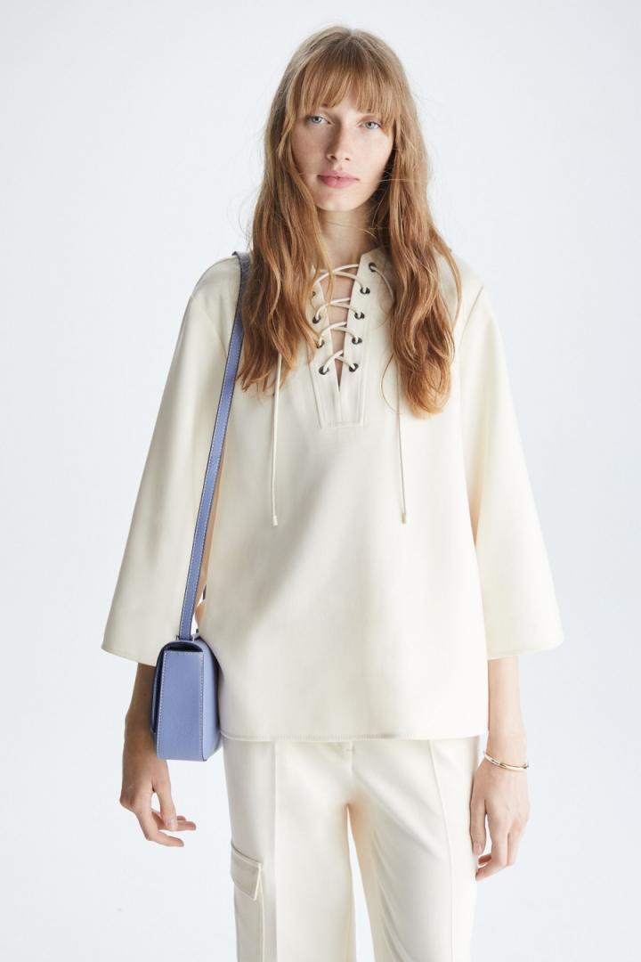 Mujer Purificacion Garcia Top doble tela cordones Crudo | Camisas