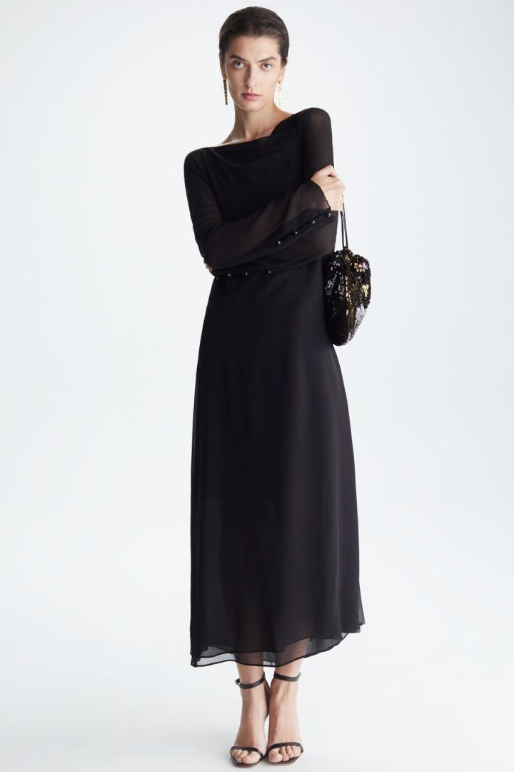 Mujer Purificacion Garcia Vestido midi crepé transparencias Negro | Vestidos