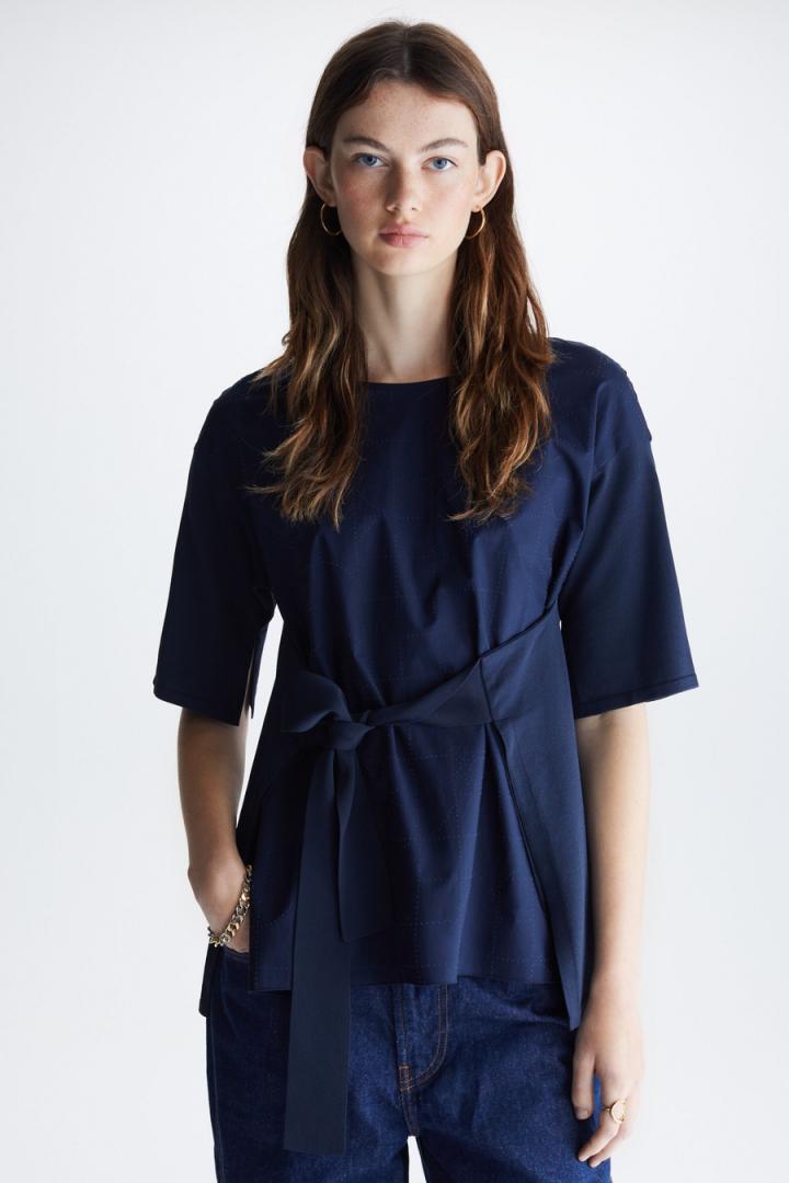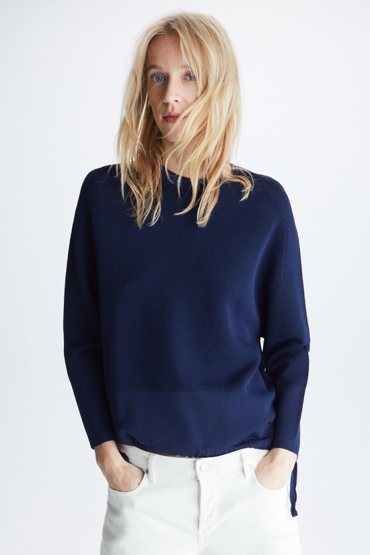 Mujer Purificacion Garcia JERSEY POPELIN TROQUELADO Y PUNTO STRETCH Azul Marino | Punto
