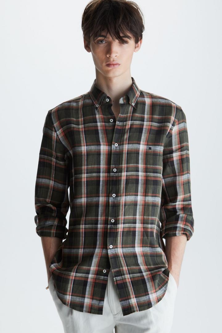 Hombre Purificacion Garcia CAMISA LINO CUADROS Verde Caqui/Naranja | Camisas
