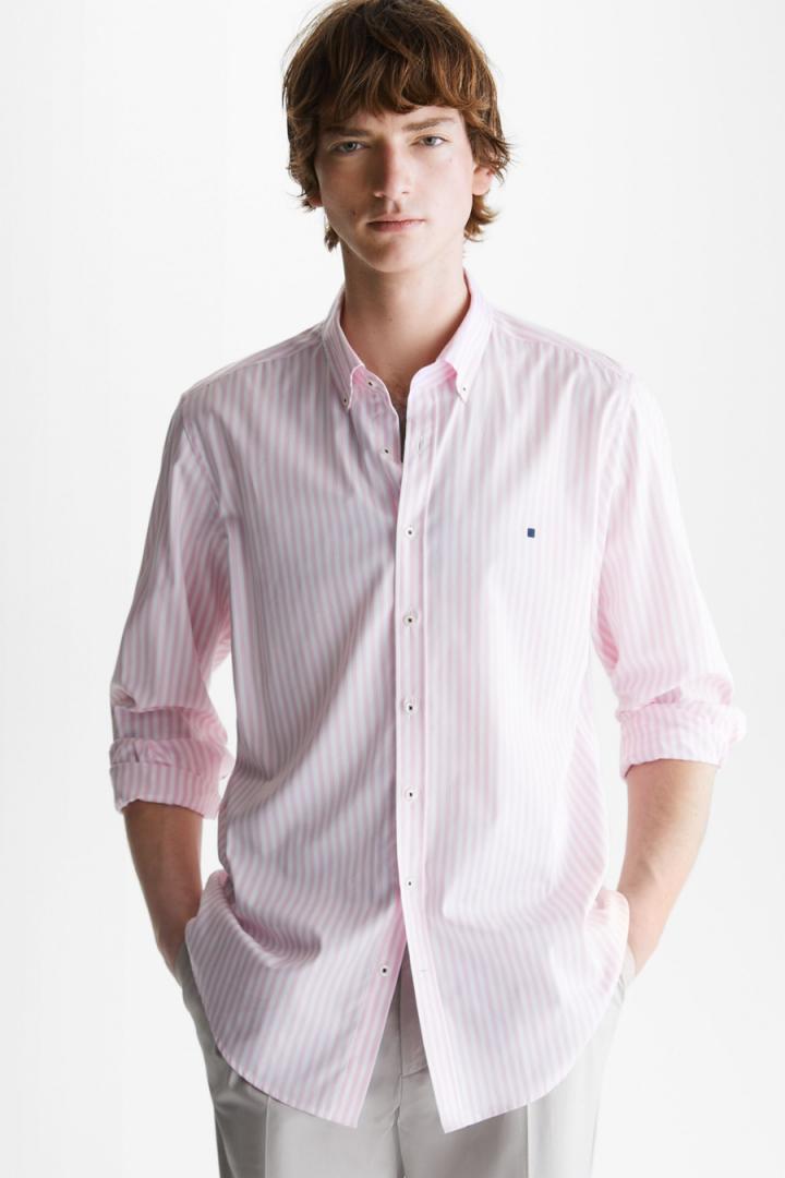 Hombre Purificacion Garcia CAMISA POPELIN RAYA CANDELA Rosa/Blanco | Camisas
