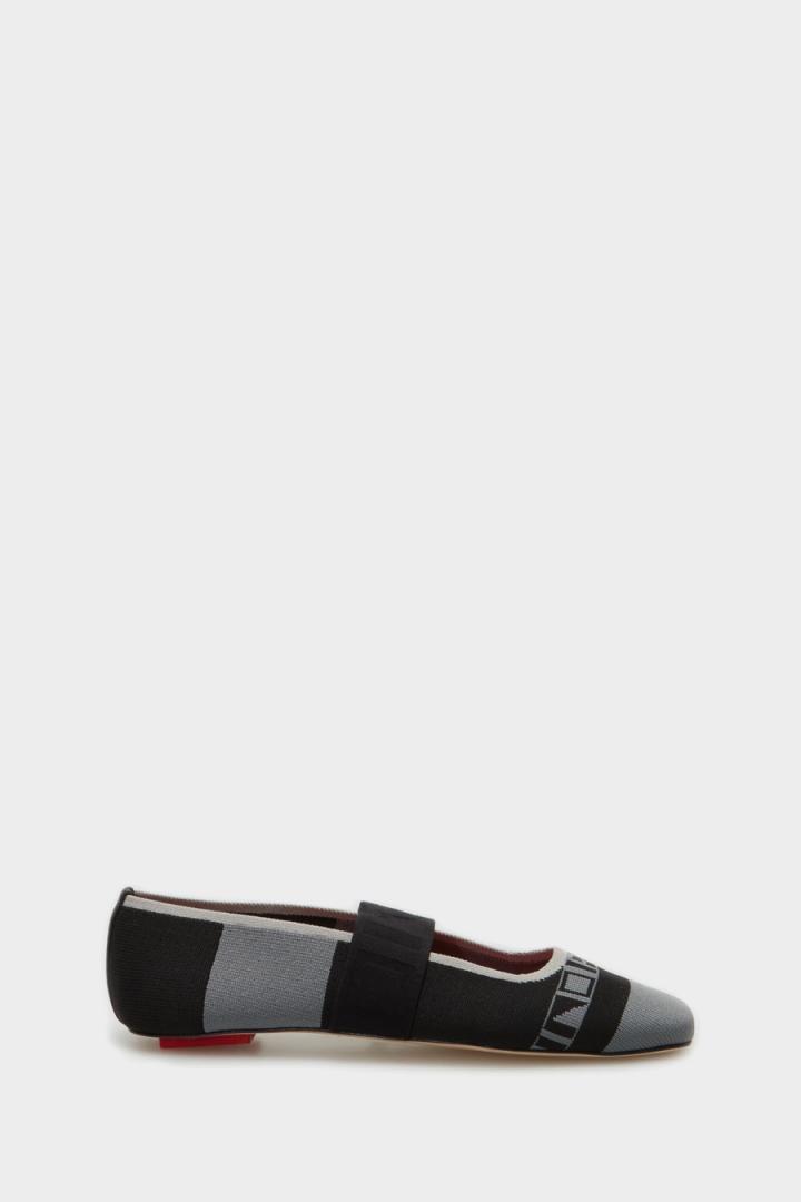 Mujer Purificacion Garcia Bailarina knit Cinta PG Negro | Zapatos planos