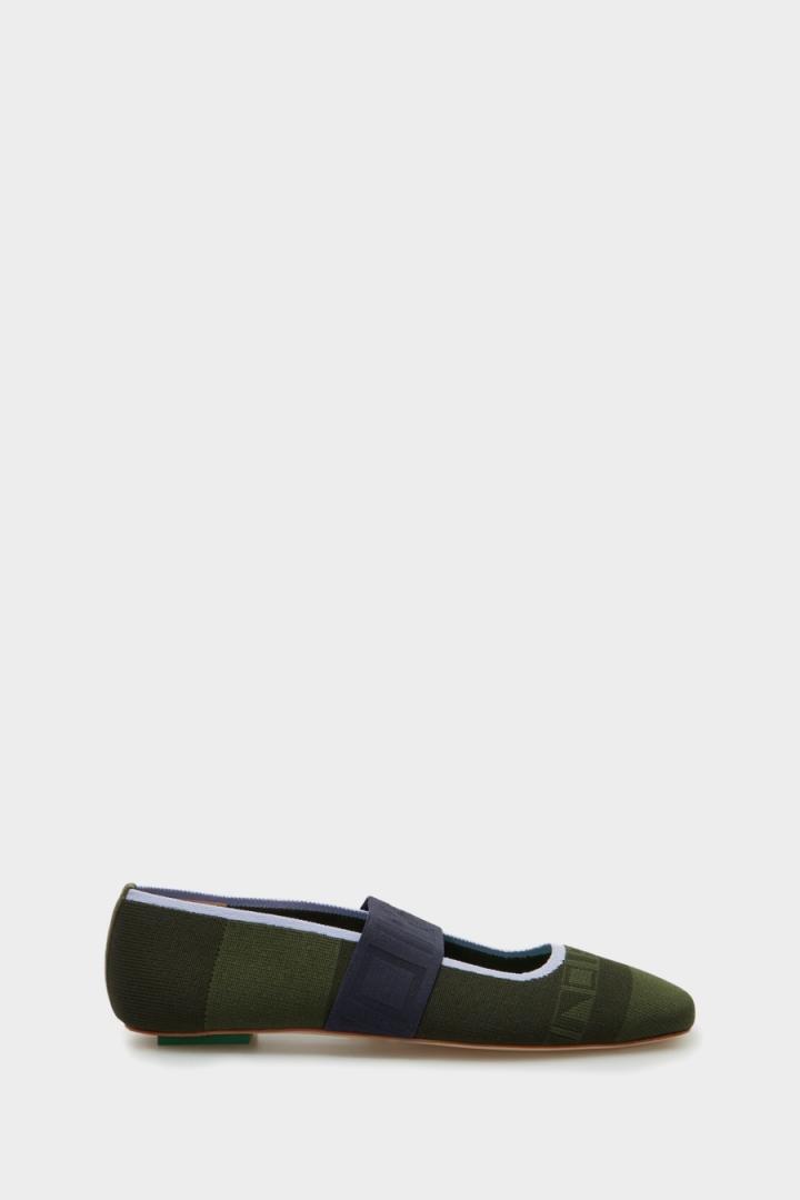 Mujer Purificacion Garcia Bailarina knit Cinta PG Verde | Zapatos planos