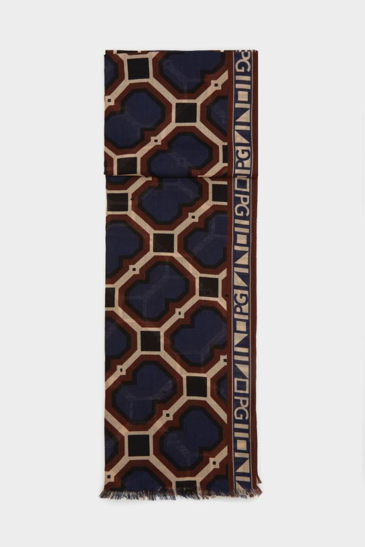 Mujer Purificacion Garcia Pashmina lana Ocho Varsity Azul Marino/Marrón/Beige | Pañuelos y bufandas