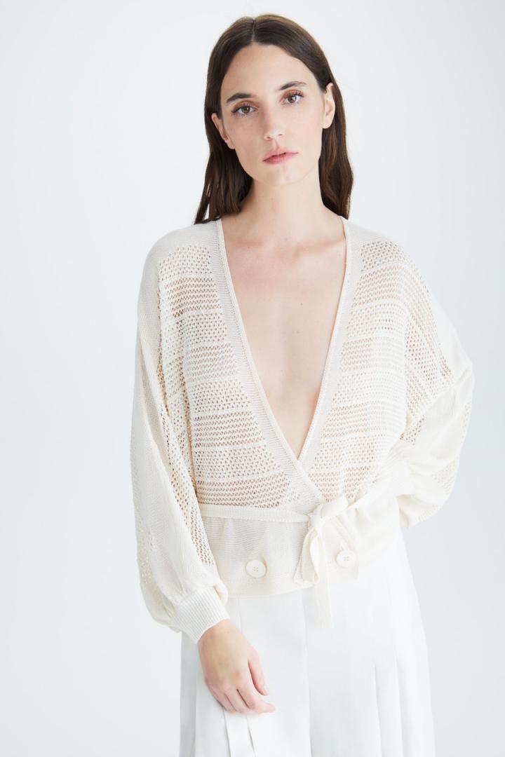 Mujer Purificacion Garcia CHAQUETA CORTA CRUZADA PUNTO CALADO Vainilla | Punto