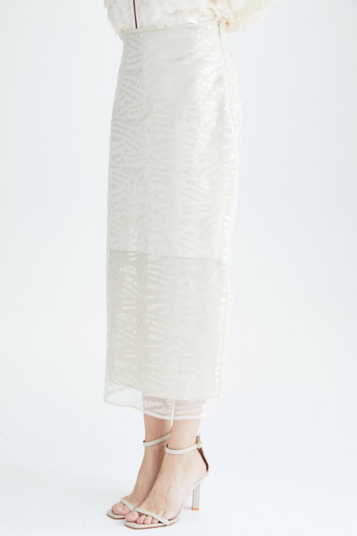 Mujer Purificacion Garcia FALDA LAPIZ TRES CAPAS LENTEJUELAS Vainilla | Fiesta