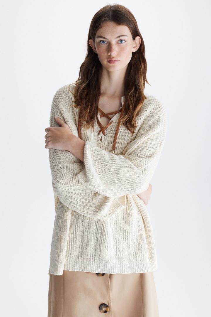 Mujer Purificacion Garcia JERSEY OVERSIZE PUNTO CUELLO PANADERO Vainilla | Punto