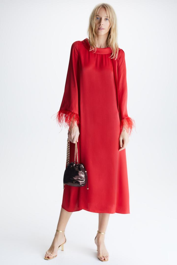 Mujer Purificacion Garcia VESTIDO MIDI SATEN PLUMAS Rojo | Vestidos
