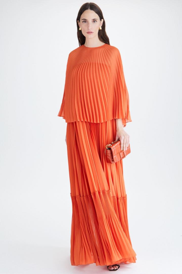 Mujer Purificacion Garcia VESTIDO PLISADO CREPE CAPA Naranja | Vestidos