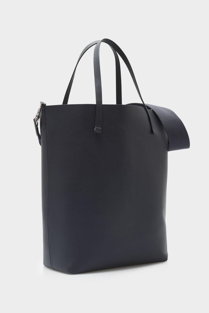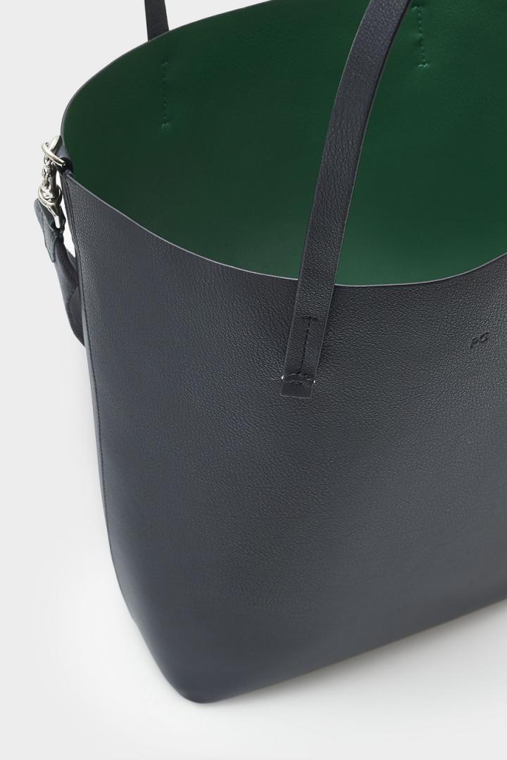 Bolso de hombro elaborado en piel de vacuno con dos asas de piel y una cinta de grosgrain extraíble con mosquetones. Interior en piel contrastada.