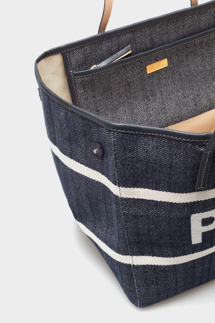 Bolso shopper grande en canvas de algodón con estampado PURE. Doble asa de piel, broches laterales y un bolsillo interior con cierre de cremallera….