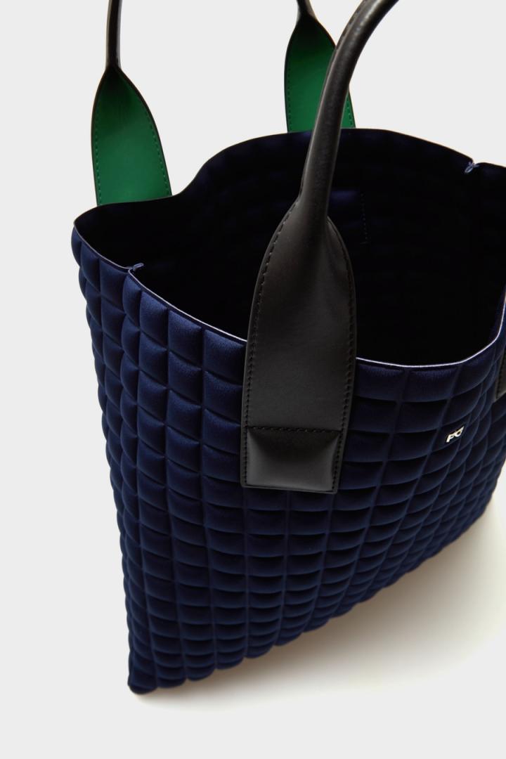 Bolso de mano en neopreno con acolchado de cubos y detalle de logo PG metálico. Asas de mano en piel a contraste.