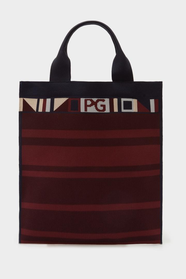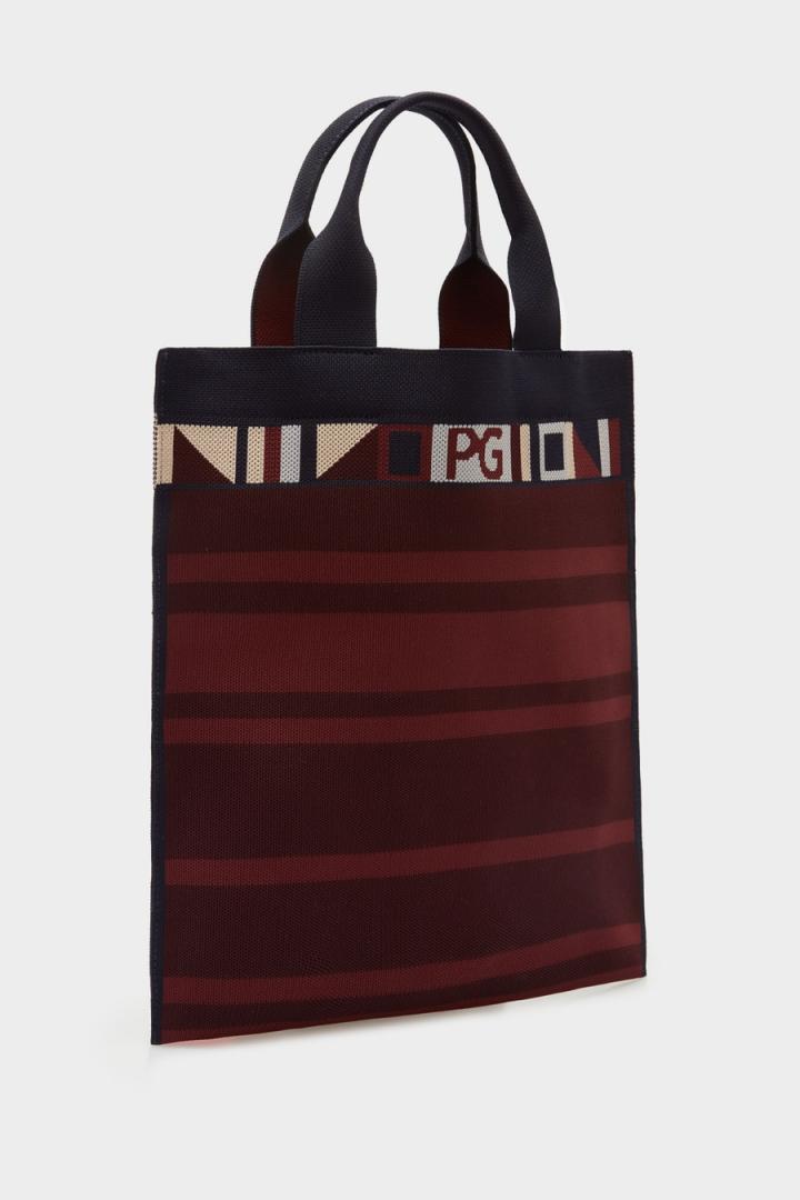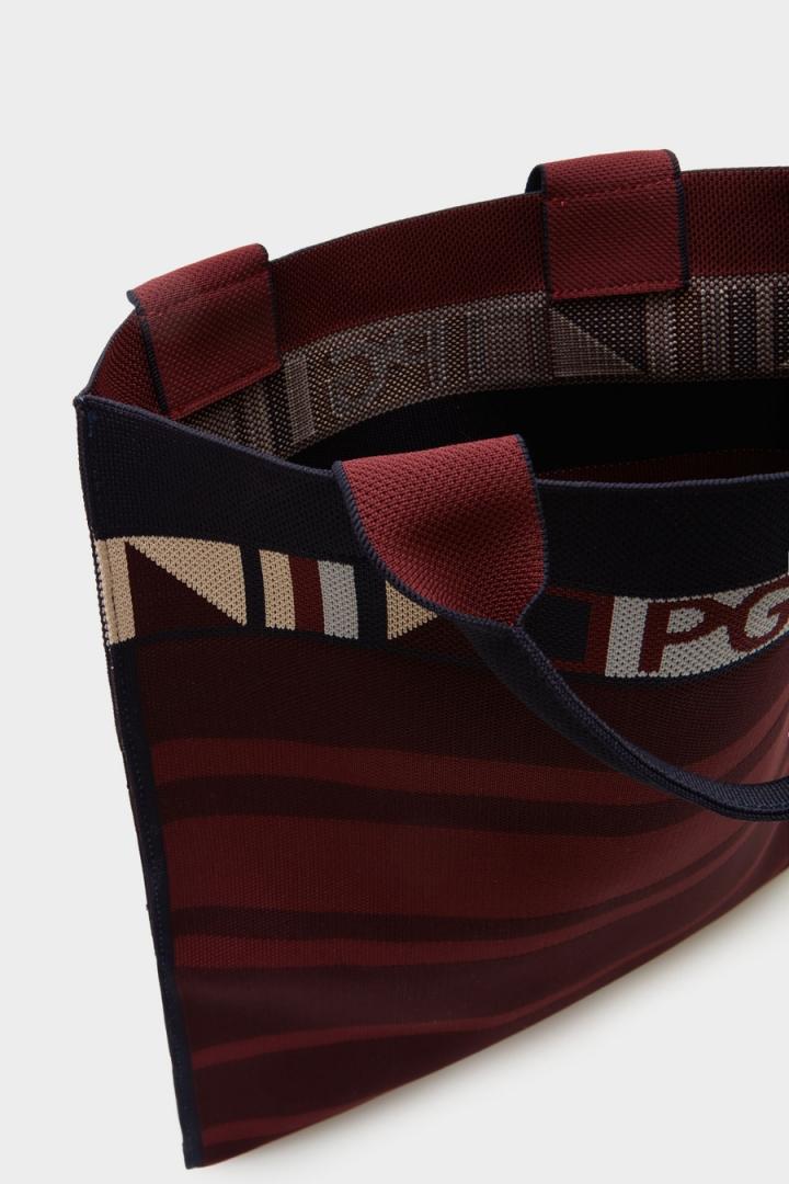 Bolso de mano grande en punto con detalle de estampado Cinta PG. Doble asa de mano de punto a contraste.
