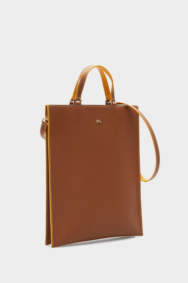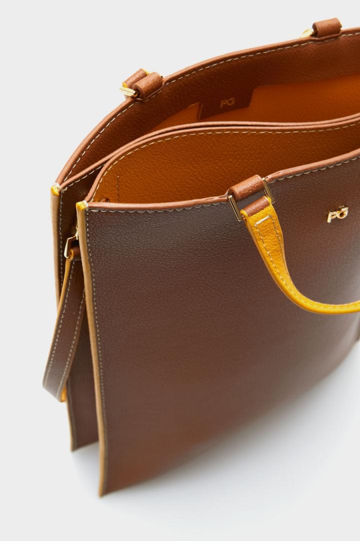 Bolso de mano en piel con pespuntes y lujado a contraste y detalle de logo PG metálico. Doble asa de mano y asa de hombro extraíble a tono. Interior con dos compartimentos y un bolsillo separador.