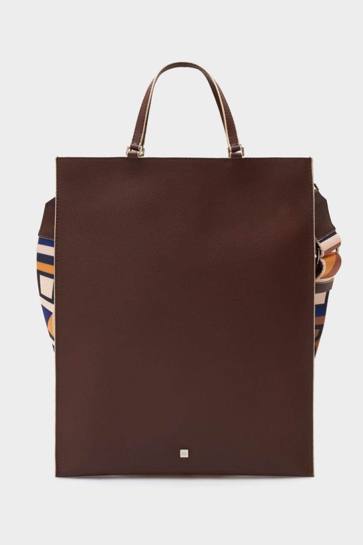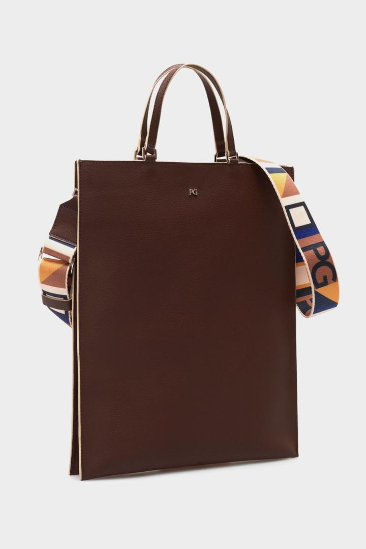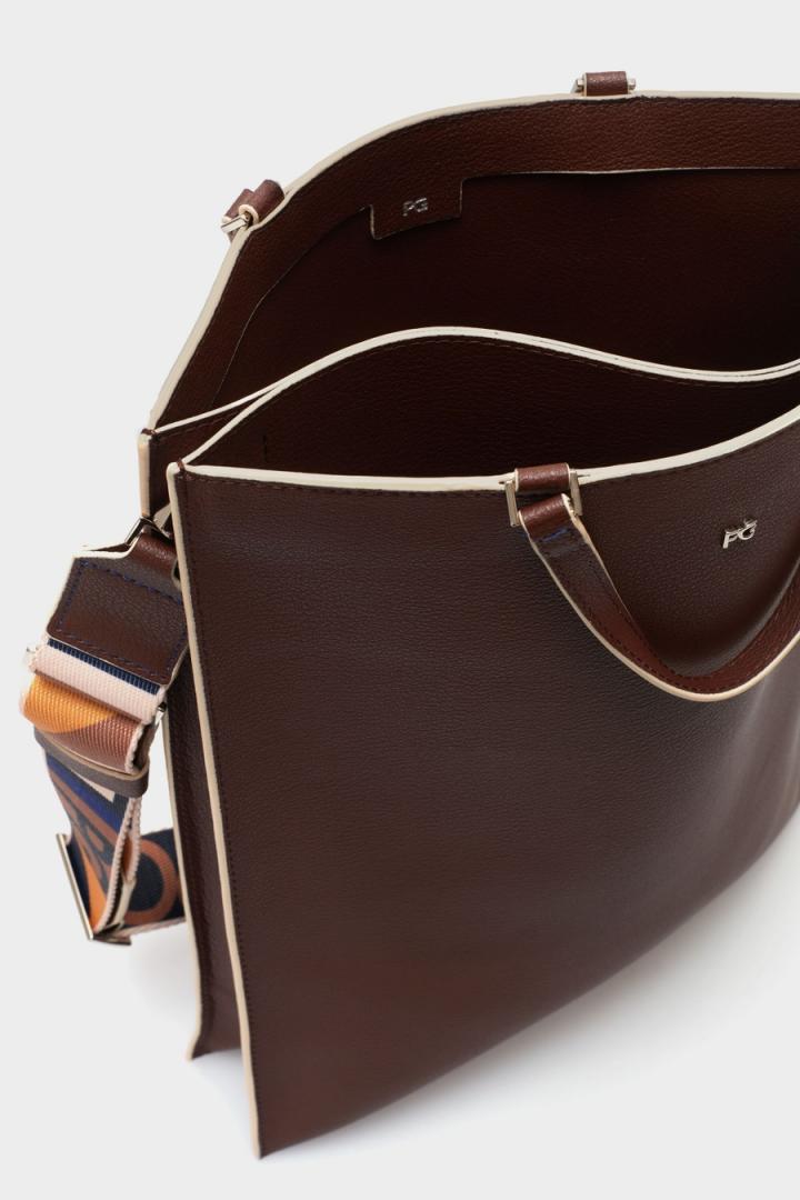 Bolso de mano grande en piel con lujado a contraste y detalle de logo PG metálico. Doble asa de mano de piel y asa bandolera extraíble y regulable de grosgrain con estampado Cinta PG. Interior de piel con dos compartimentos y un bolsillo separador.