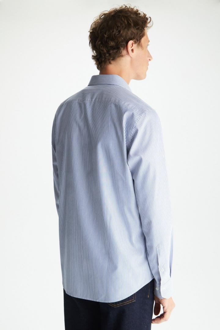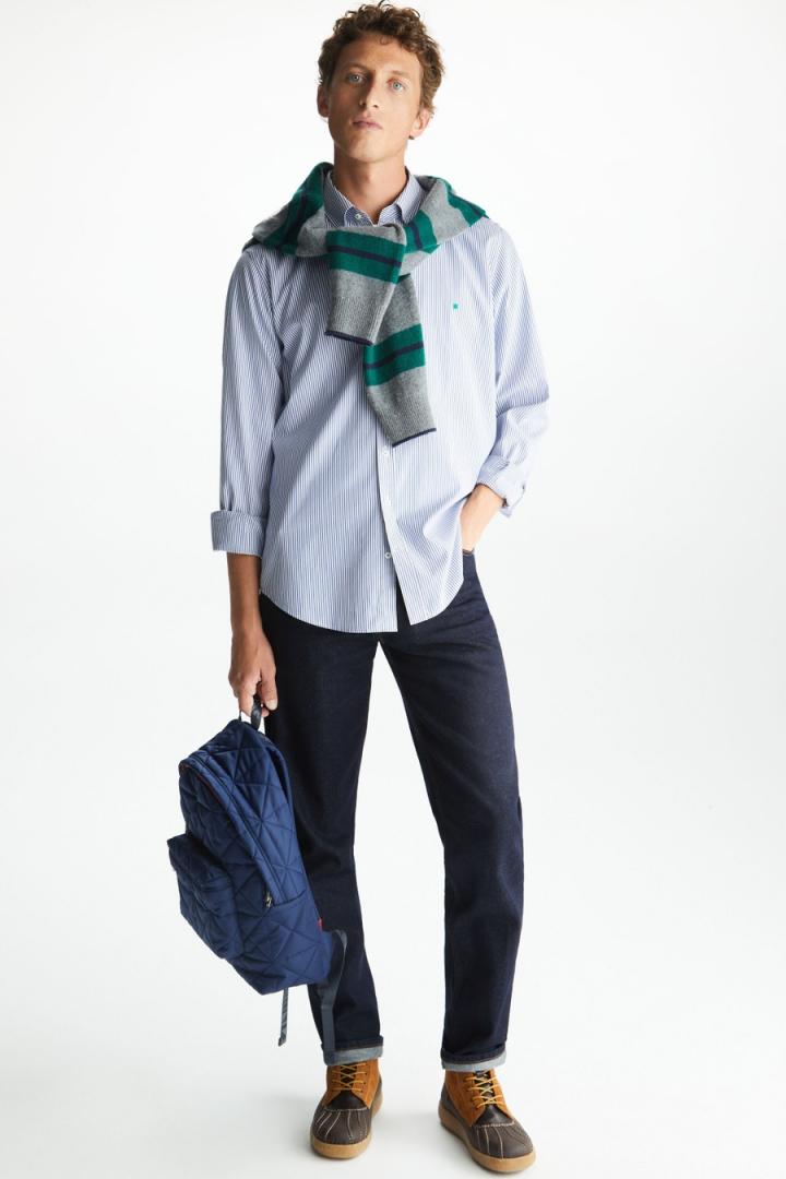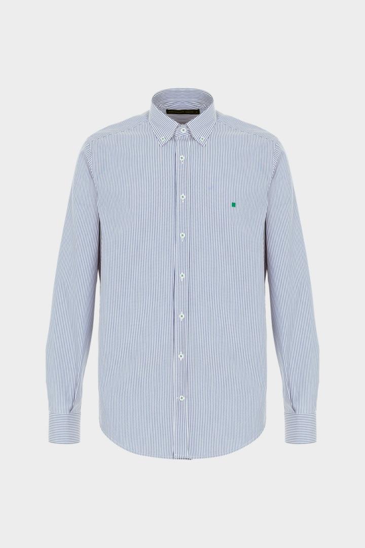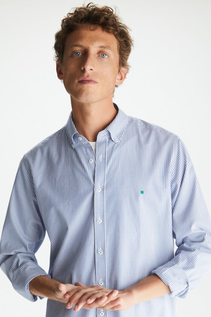 Camisa regular fit en Oxford de algodón con diseño de raya candela. Cuello abotonado e hilo de botón a contraste. Logo cubo bordado a contraste en pecho. El modelo mide 190 cm y lleva una talla 4.