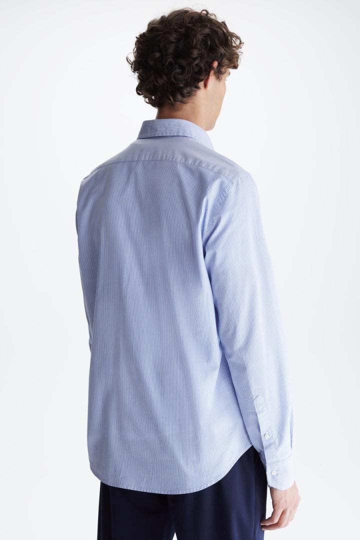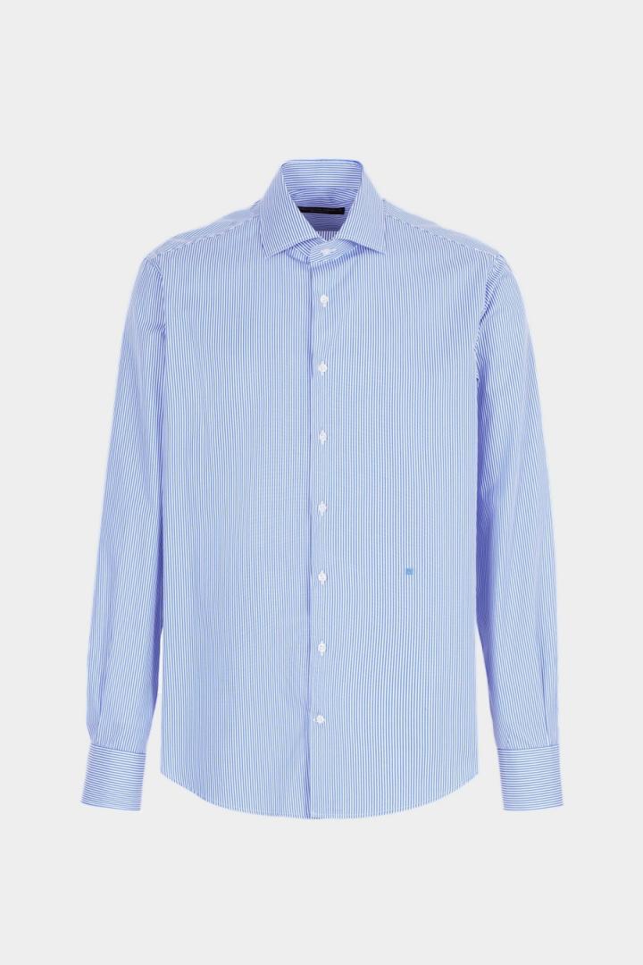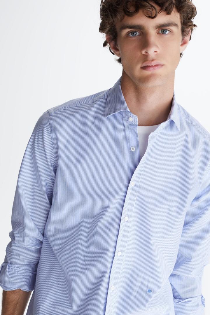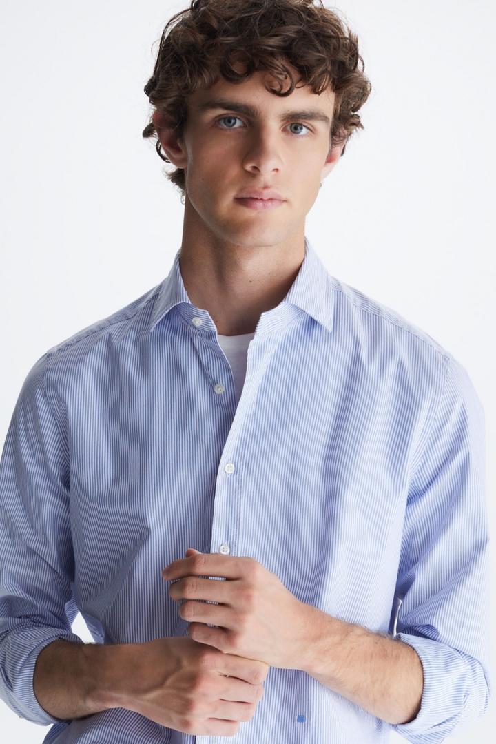 Camisa regular fit en Oxford de algodón con diseño de rayas. Cuello italiano e hilo de botón a tono. Logo cubo bordado a tono en bajo delan…
