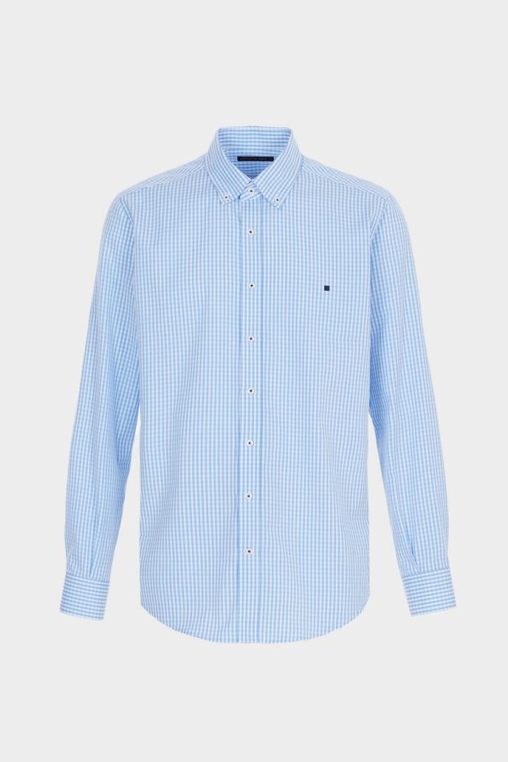 Hombre Purificacion Garcia CAMISA POPELIN CUADROS VICHY Azul Celeste/Blanco | Camisas