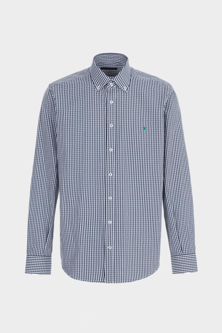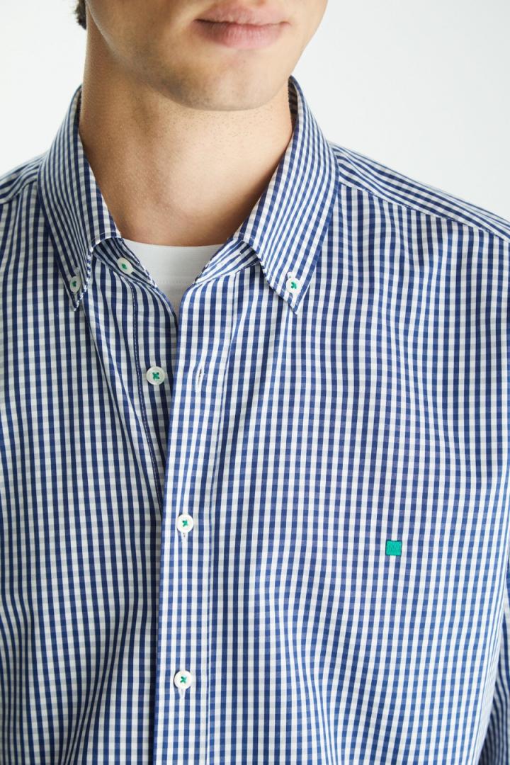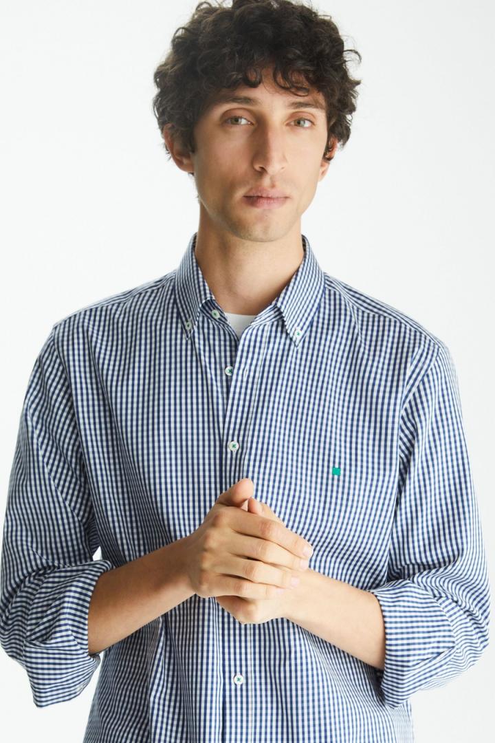 Camisa regular fit en popelín de algodón con cuadros Vichy. Cuello abotonado e hilo de botón a contraste. Logo cubo bordado a contraste…