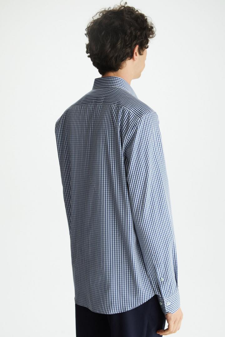 Camisa regular fit en popelín de algodón con cuadros Vichy. Cuello abotonado e hilo de botón a contraste. Logo cubo bordado a contraste en pecho. El modelo mide 188 cm y lleva una talla 4.