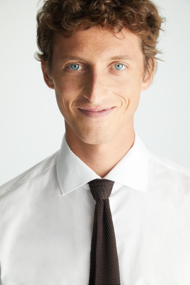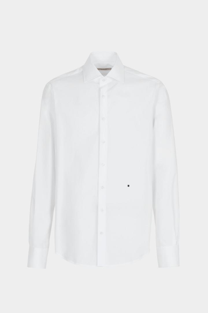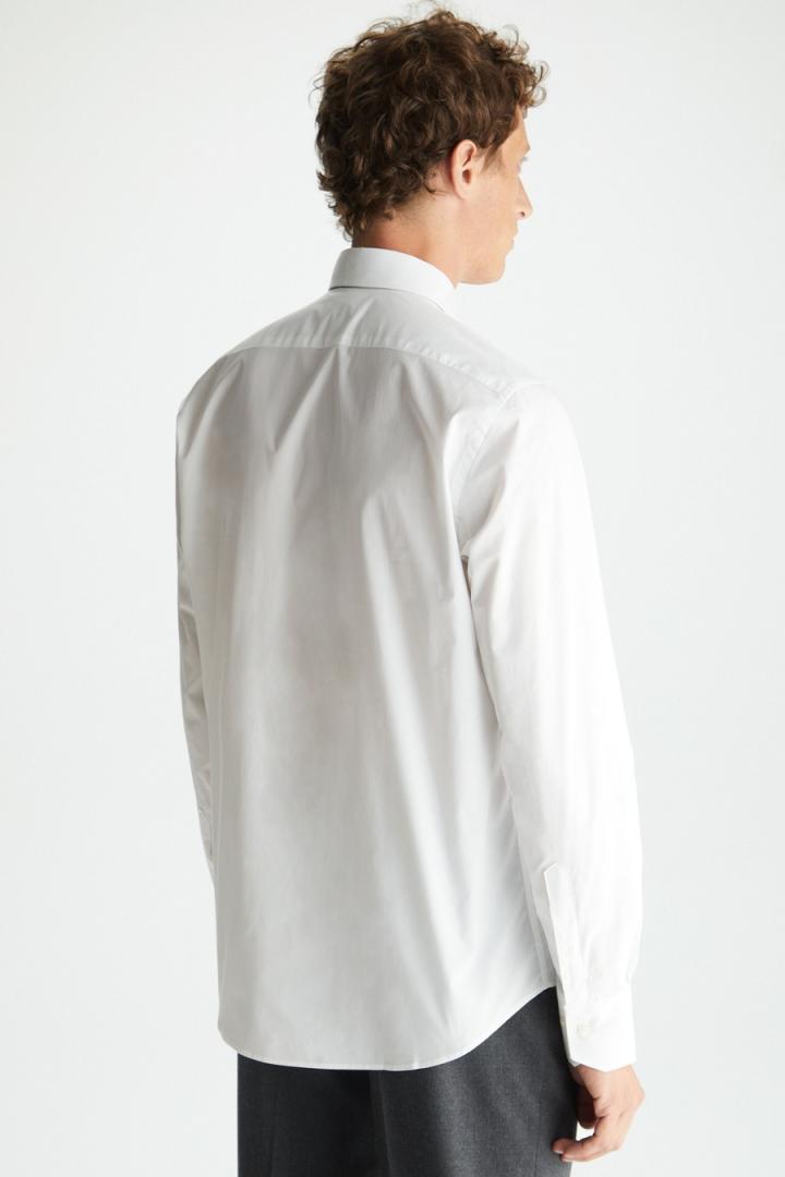Camisa regular fit en popelín de algodón. Cuello italiano, hilo de botón a tono y logo cubo bordado a contraste en bajo delantero. El modelo mide 190 cm y lleva una talla 4.