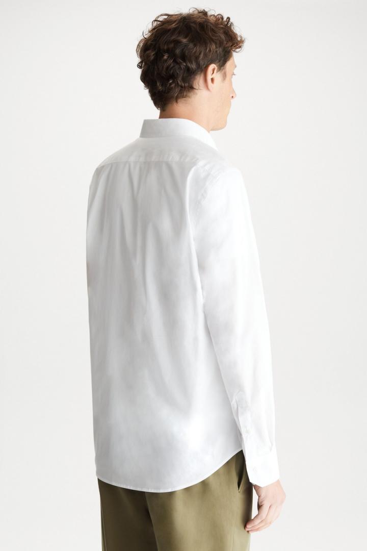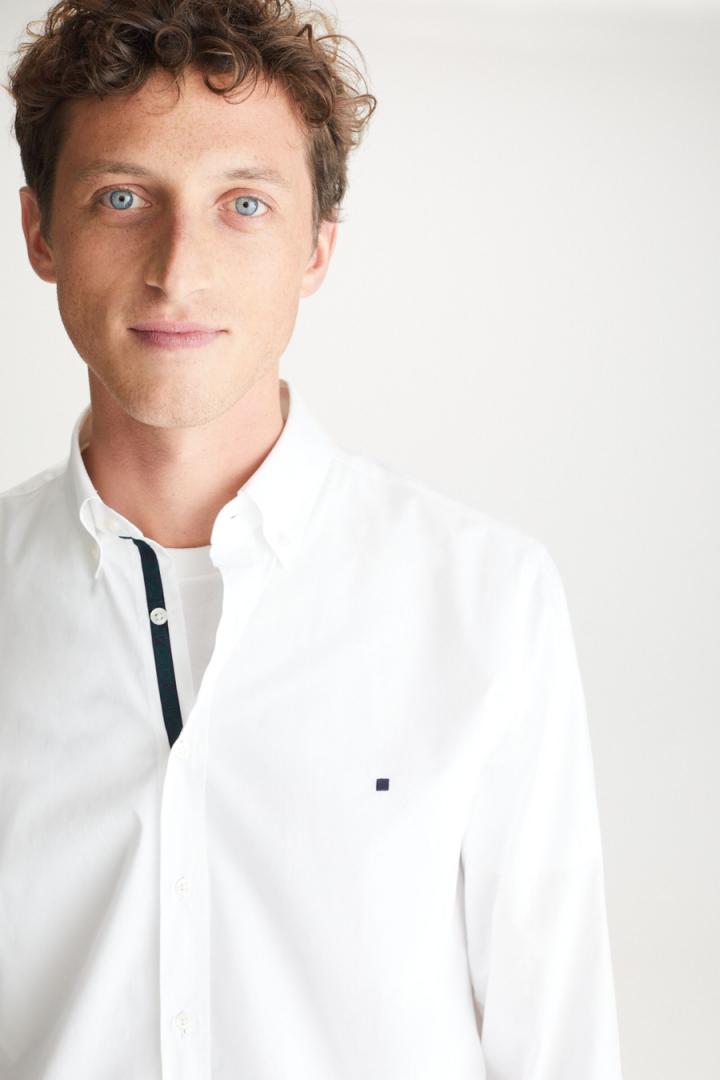 Camisa regular fit en popelín de algodón con detalle de cinta de grosgrain en interior de tapeta. Cuello abotonado e…