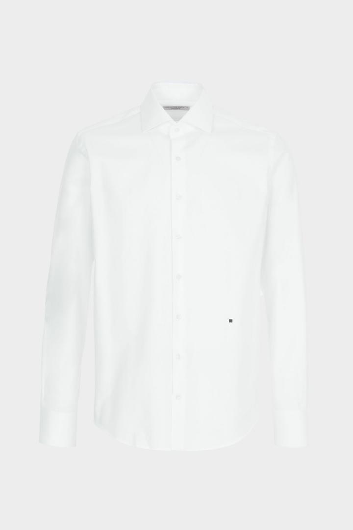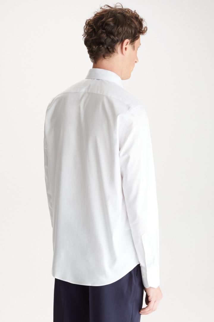 Camisa regular fit en sarga de algodón. Cuello italiano e hilo de botón a tono. Logo cubo bordado a contraste en bajo delantero. El modelo mide 190 cm y lleva una talla 4.