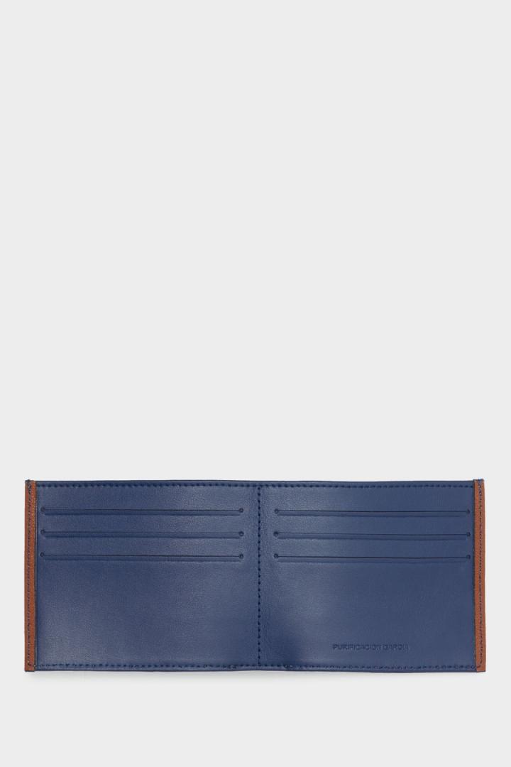 Cartera en piel Saffiano con logo PG y detalle de pespuntes. Interior a contraste con billetera simple y 6 ranuras para tarjetas.