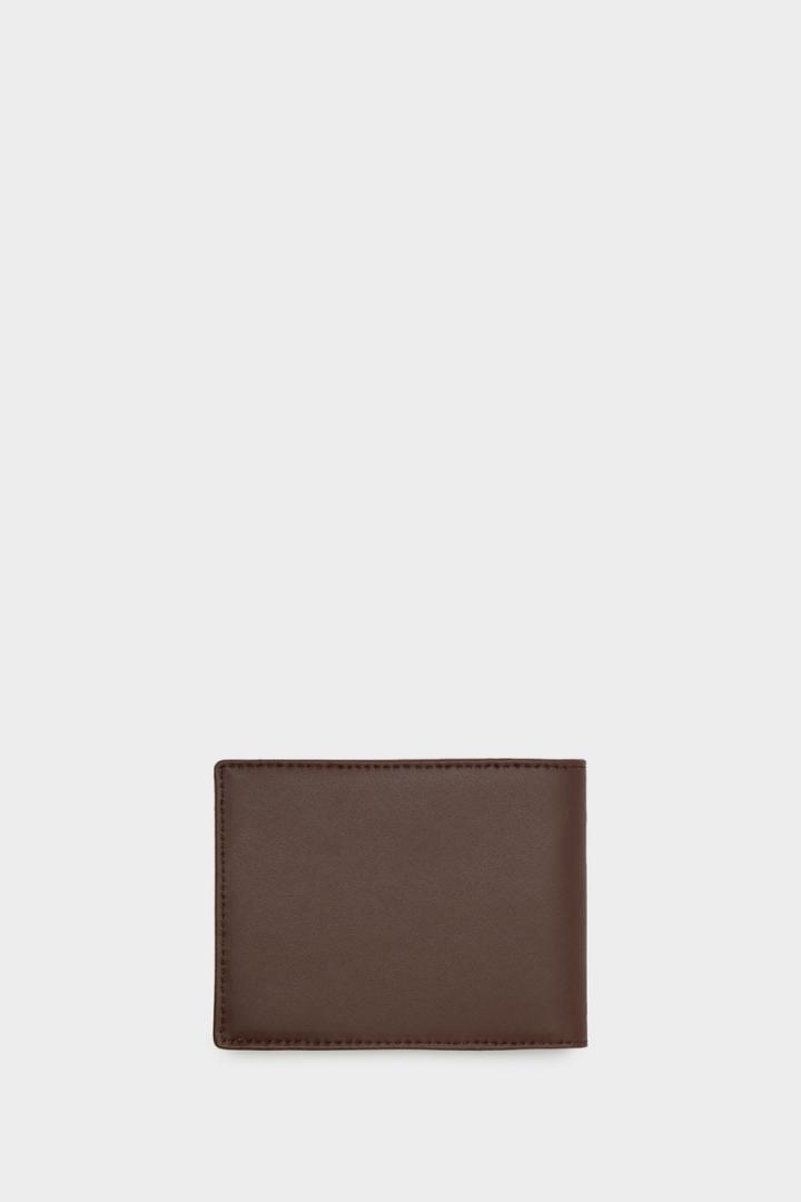 Cartera apaisada en piel con detalle de Cubo PG metálico esmaltado y pespuntes a tono. Interior con monedero, billetera simple y tres ranuras para tarjetas a contraste.