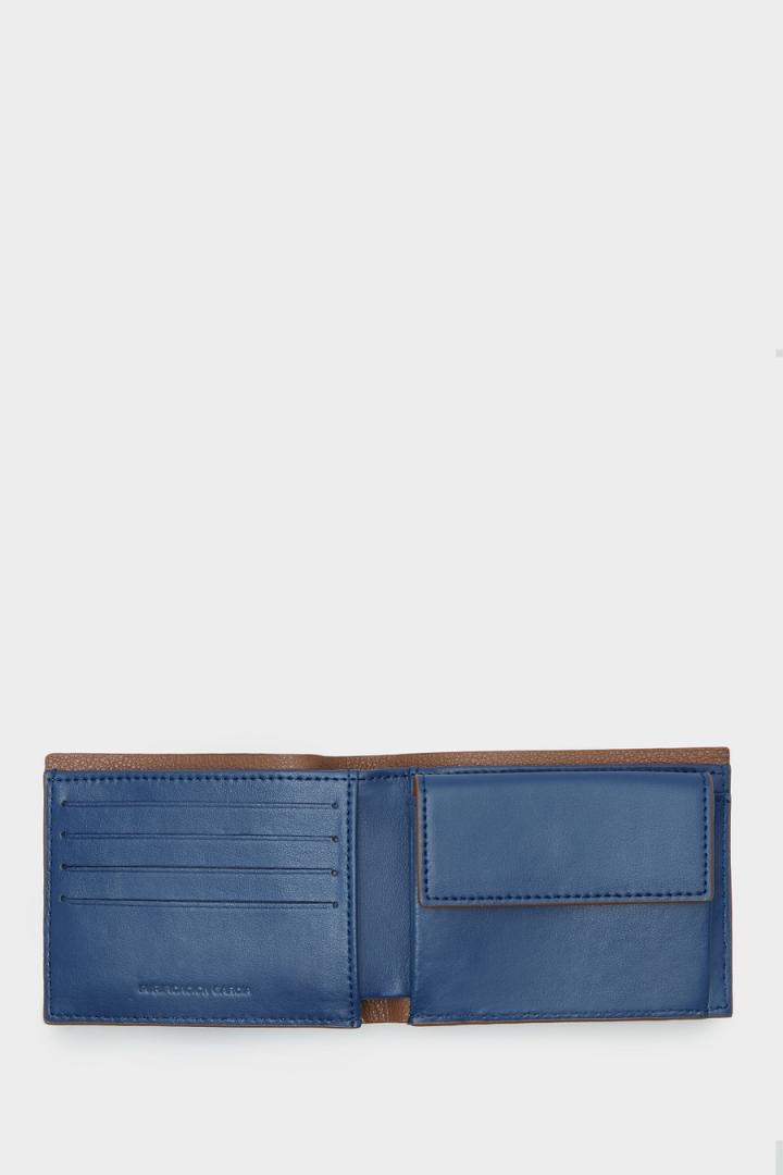 Cartera apaisada en piel con logo PG grabado a tono y detalle de pespuntes a contraste. Interior con monedero, billetera simple y 4 ranuras para tarjetas.