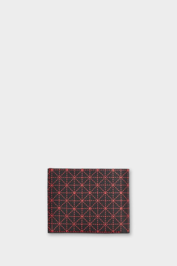 Cartera apaisada en piel con estampado Origami y Ocho. Interior a contraste con doble billetera y seis ranuras para tarjetas.