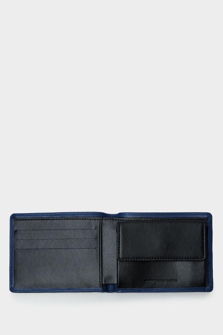 Cartera apaisada en piel grabada con Stamp Origami. Interior con doble billetera y 6 ranuras para tarjetas.