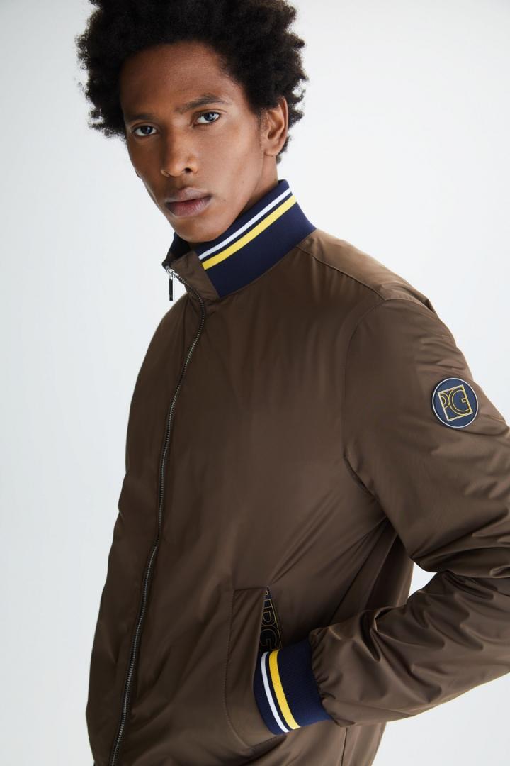 Cazadora regular fit en nylon técnico resistente al agua. Cuello tira, cierre de cremallera de doble cursor a contraste y dos bolsillos de vivo con Cinta PG en interior. Doble raya bicolor a contraste en cuello, puños y bajo y parche PG de goma en la manga izquierda. El modelo mide 189 cm y lleva una talla M.