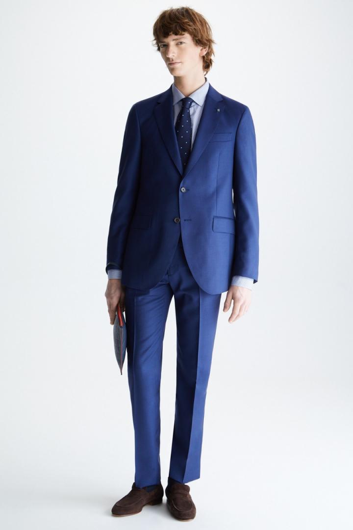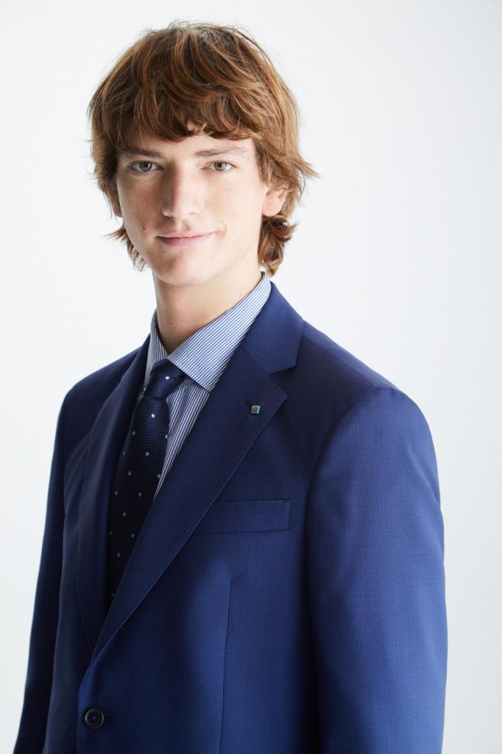 Chaqueta de traje classic fit en ojo de perdiz de lana virgen. Cierre de dos botones y dos aberturas laterales. Dos bolsillos con tapeta y bolsillo cartera en pecho. Hombro desestructurado, forro…